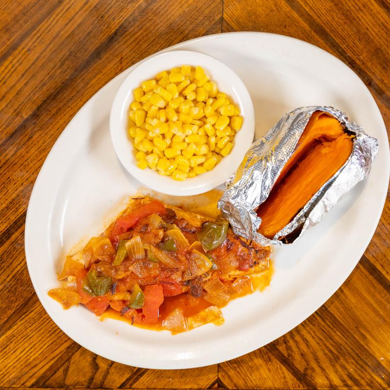 Try it smothered with sauted onions. Served with two sides.